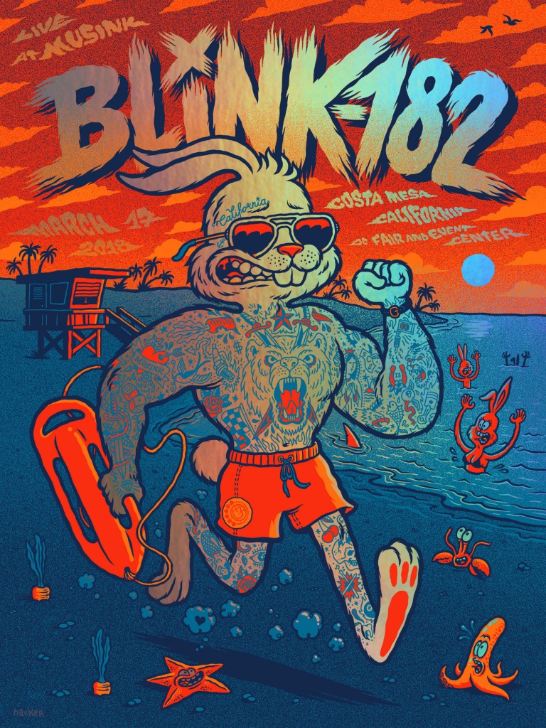 Here’s my second gig poster for blink-182‘s show on March 17 2018 at Musink Festival, Costa Mesa, California.