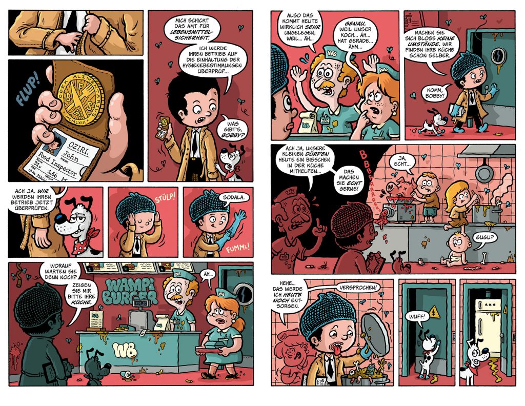 I’m starting a brand new comic book series about the adventures of John Oziri – a food inspector with very strange and slightly disgusting super powers – and his dog Bobby. The first issue is available in my online shop now and the first story arch will be four or five issues. I hope it doesn’t take me another decade to finish.
