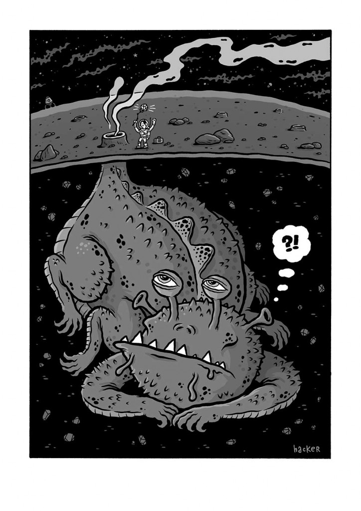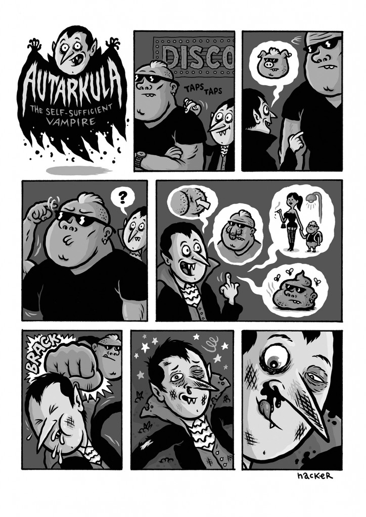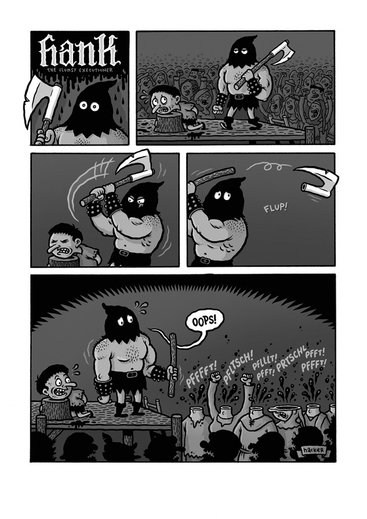 Finally I put together the second issue of my self-published comic series called Häcksler (German for shredder and one of my nicknames)! 32 pages full of wordless short stories about clumsy executioners, curious little doggies, rebellious brains and other fascinating stuff. Inspired by true events (in my head).